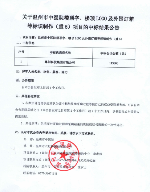 关于绿帽社 楼顶字、楼顶LOGO及外围灯箱等标识制作(重5)项目的中标(成交)结果公告