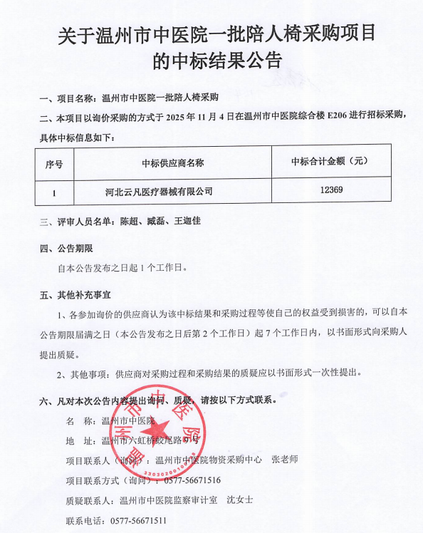 关于绿帽社 呼吸机维保项目的中标(成交)结果公告