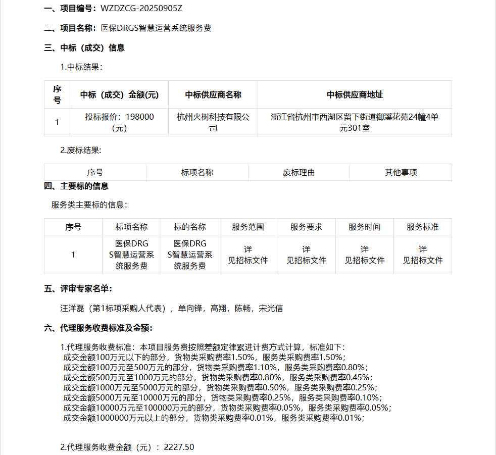 关于绿帽社 医保DRGS智慧运营系统服务费项目的中标(成交)结果公告查看详情+