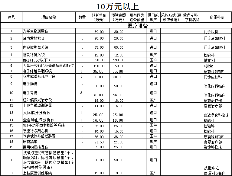绿帽社 2021年医疗设备采购计划查看详情+