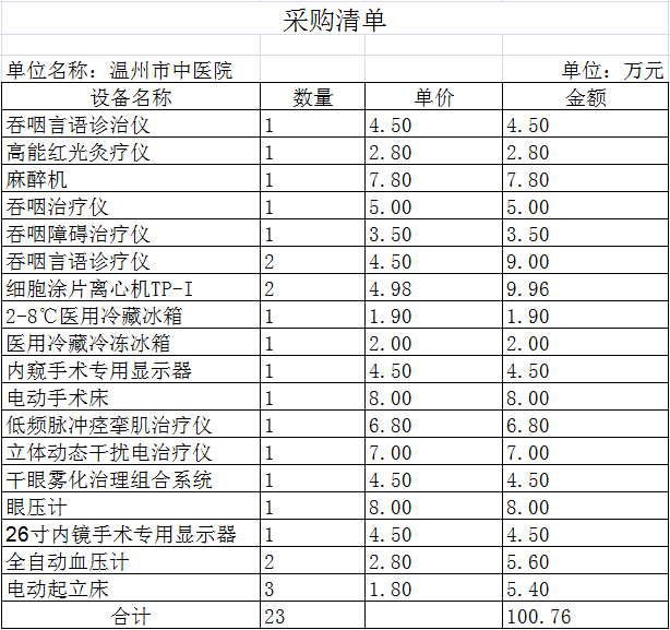 绿帽社 2021年医疗设备采购计划