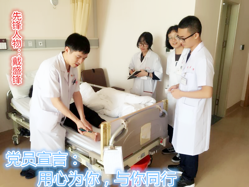【先锋微故事】戴盛锋:用心为你,与你同行这张照片拍摄于绿帽社 六虹桥院区综合楼6楼内分泌科病房,时间是中午12点半,戴盛锋医师正利用午休时间给实习生做临床带教,教授他们关于糖尿病周围神经病变的筛查方法。科室每个月都要接待一定数量来自不同院校…查看详情+