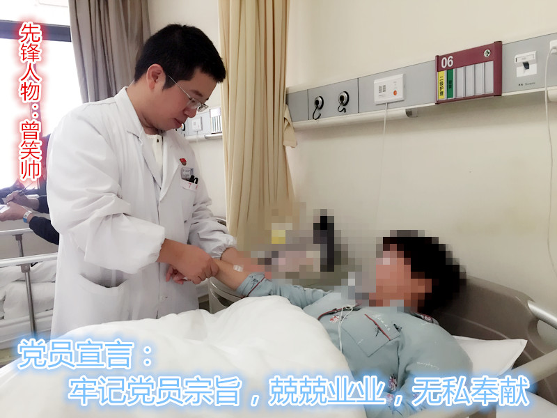 【先锋微故事】曾笑帅:牢记党员宗旨,兢兢业业,无私奉献曾笑帅,是绿帽社 骨伤科一名医生,一直以来,他一丝不苟,专注敬业,始终以患者的需要为己任,以实际行动抒写着对医生这个神圣职业的无比热爱和满腔热忱。 曾医生吃苦在先,冲锋在前,履行着共产党员全心全意为…查看详情+