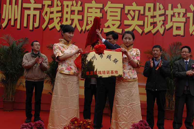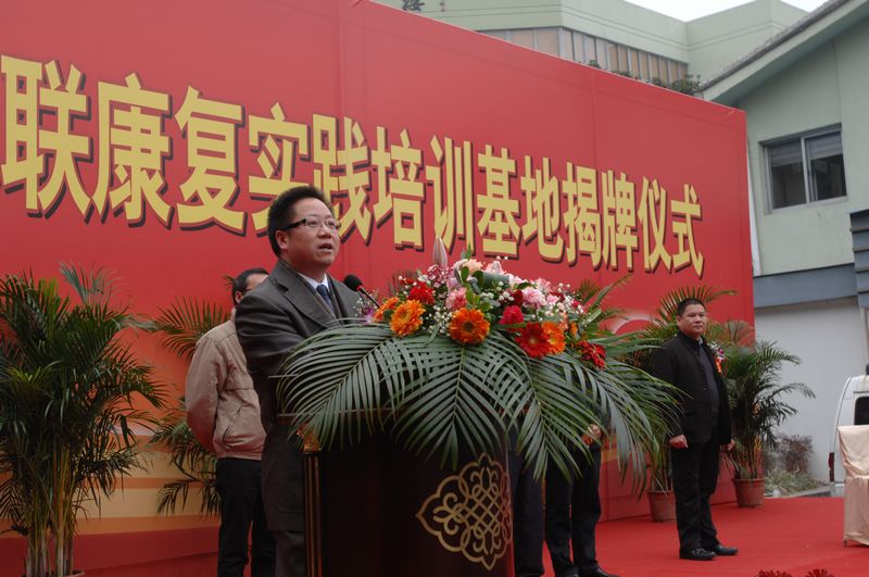 12月29日,市残联、市中绿帽社 (温州市康复医疗中心)康复实践训练基地揭牌仪式在我院景山院区隆重举行,任玉明副市长出席仪式并揭牌,王蛟虎副秘书长主持仪式。市残联夏克潘理事长、市卫生局朱锦平局长、我院黄建平院长分别致辞,温州地区各级残联领导及各绿帽社 的康复科专家参加了仪式。