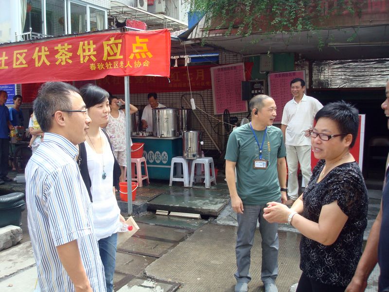 2011年7月14日上午,我院施仲义副院长与党办、院办、医务科等职能部门及药剂科负责人一起,赴蒲鞋市街道横河北社区进行“夏季送伏茶”活动。
