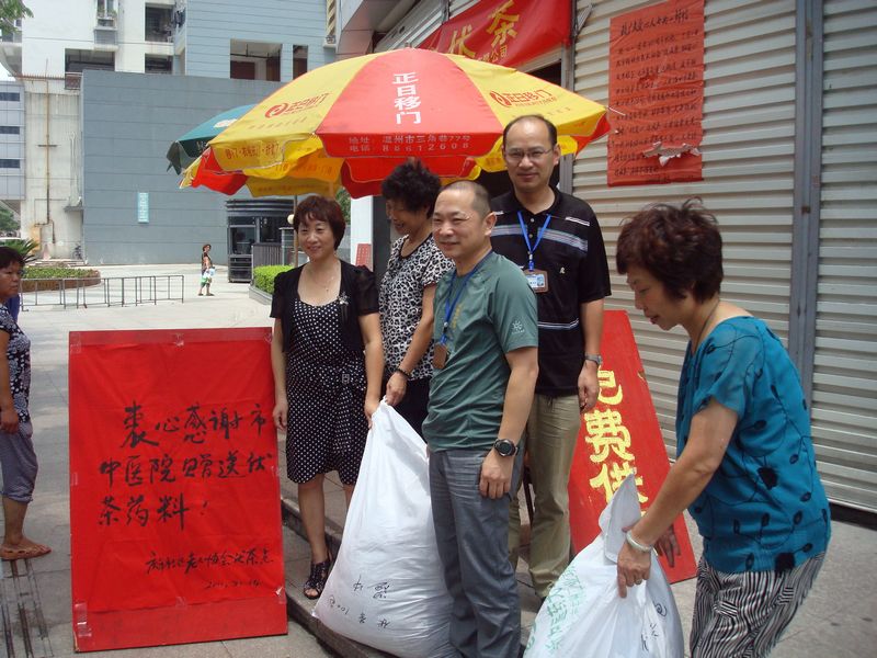 2011年7月14日上午,我院施仲义副院长与党办、院办、医务科等职能部门及药剂科负责人一起,赴横河北、春秋、沧河、西城路、庆年坊等社区及绿帽社 门口进行“夏季送伏茶”活动,免费送伏茶价值10余万元。