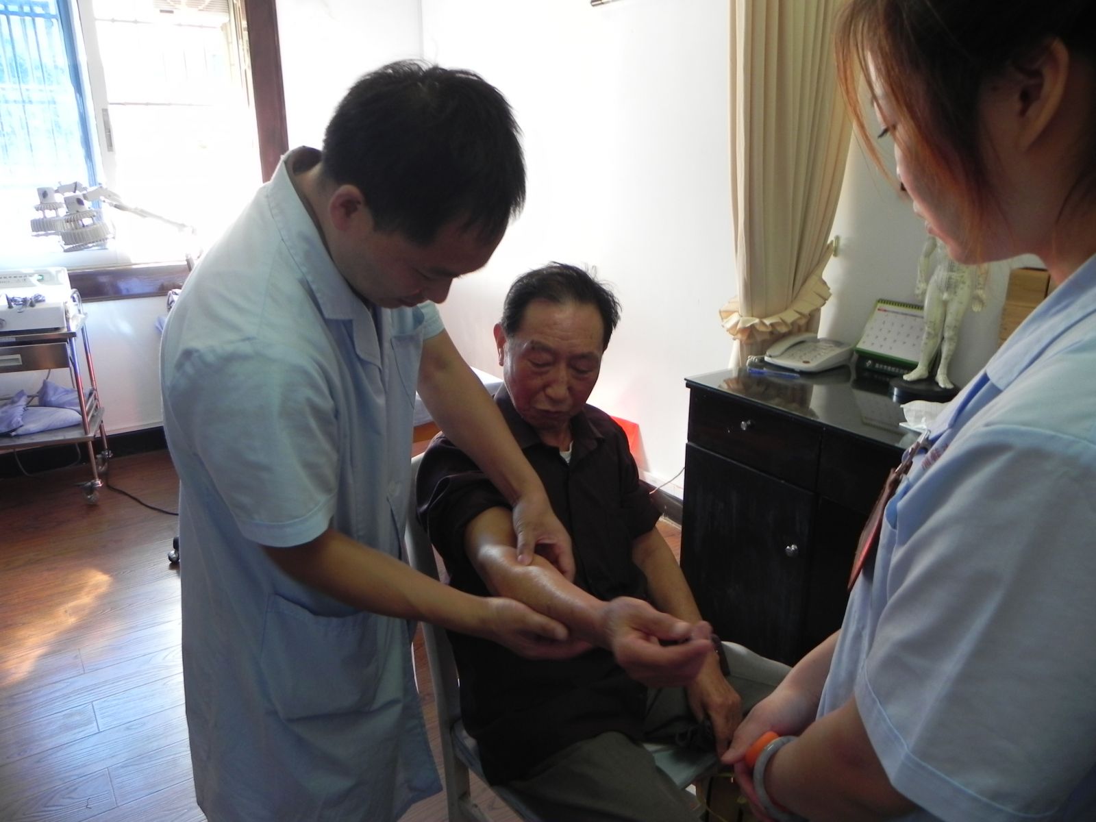 10月11日下午,我院联合蒲鞋市社区卫生服务中心在市锦园社区开展“敬老助老,从我做起”义诊活动。我院肝病科欧阳钦副主任中医师、针灸科宋丰军副主任中医师等多名医护工作人员为社区老人们提供免费义诊、测血压、免费发放各种健康宣传资料、宣传控油少盐的健康生活方式等服务。