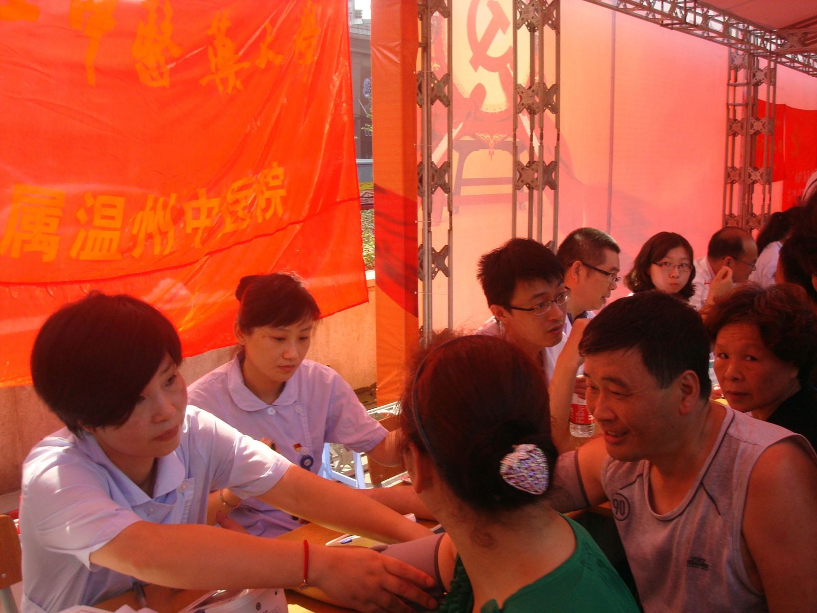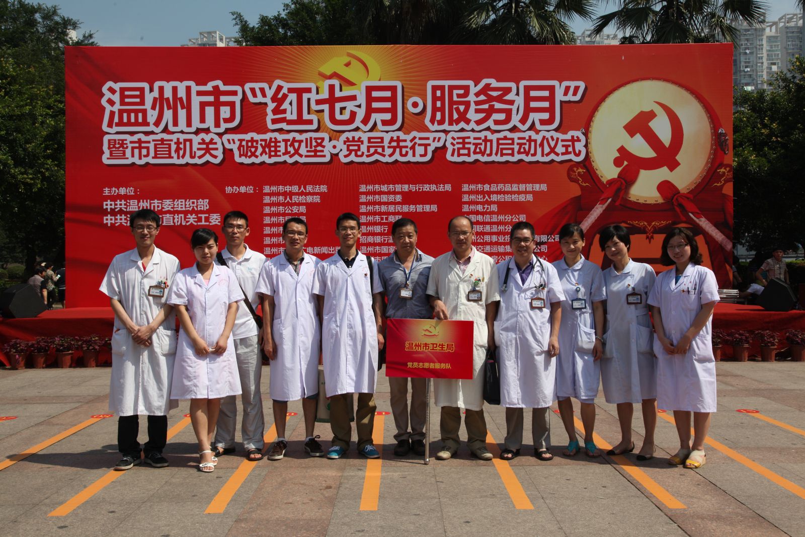 2012年7月1日上午,我院党委暨各支部党员医护人员在松台广场参加由市委组织部及市卫生局组织开展纪念建党91周年“红七月、服务月”活动。我院中医内科、妇科及骨伤科医务人员为市民量血压、健康咨询200余人次,并发放健康宣传资料300余份。