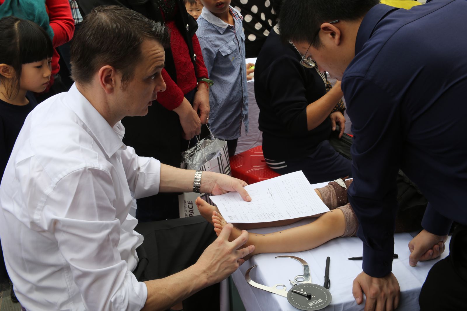 为进一步弘扬温州中医的发展历程,提升我市中医文化氛围,11月9日上午,我院联合温州广播电视传媒集团、南浦社区卫生服务中心、南汇街道春秋社区在春秋社区广场开展建院90周年大型义诊活动。活动现场有10余位各科名医专家坐诊,为市民提供义诊咨询服务,提供免费血糖、测血脂、测血压、耳穴埋豆、膏方品尝、药材鉴别等,现场还教大家一起做《经络拍打操》,并有来自澳大利亚的医生免费为群众测量身体形态与脊柱健康。