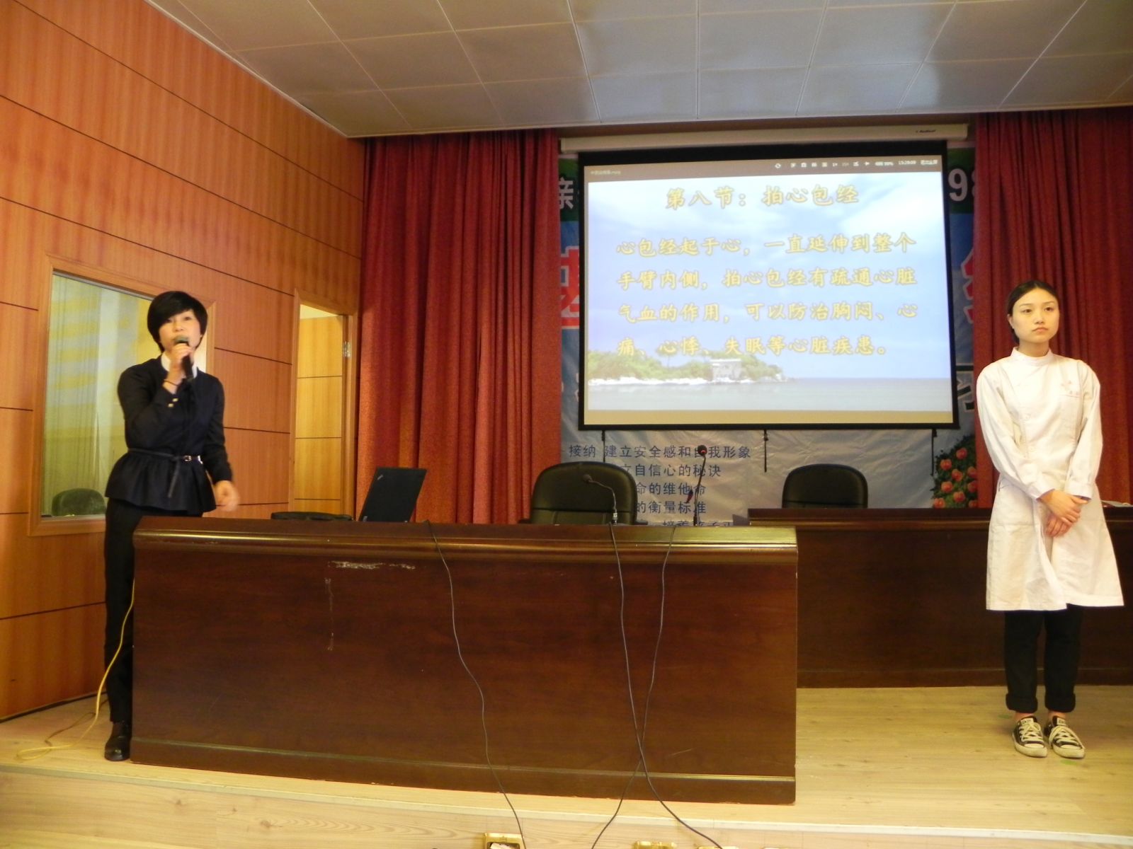 4月26日下午,我院2013年第六期健康大讲堂在永嘉县图书馆四楼会议室开讲。体检科副主任陈念昭作题为《中医体质与养生》的讲座,教大家如何进行中医体质辨识,讲解体质辨识如何有效地介入预防慢性病及亚健康,以及如何从现代人的生活角度来看养生保健。活动现场,让大家填写《中医体质辨识问卷》,能够更加了解自己的体质类型。