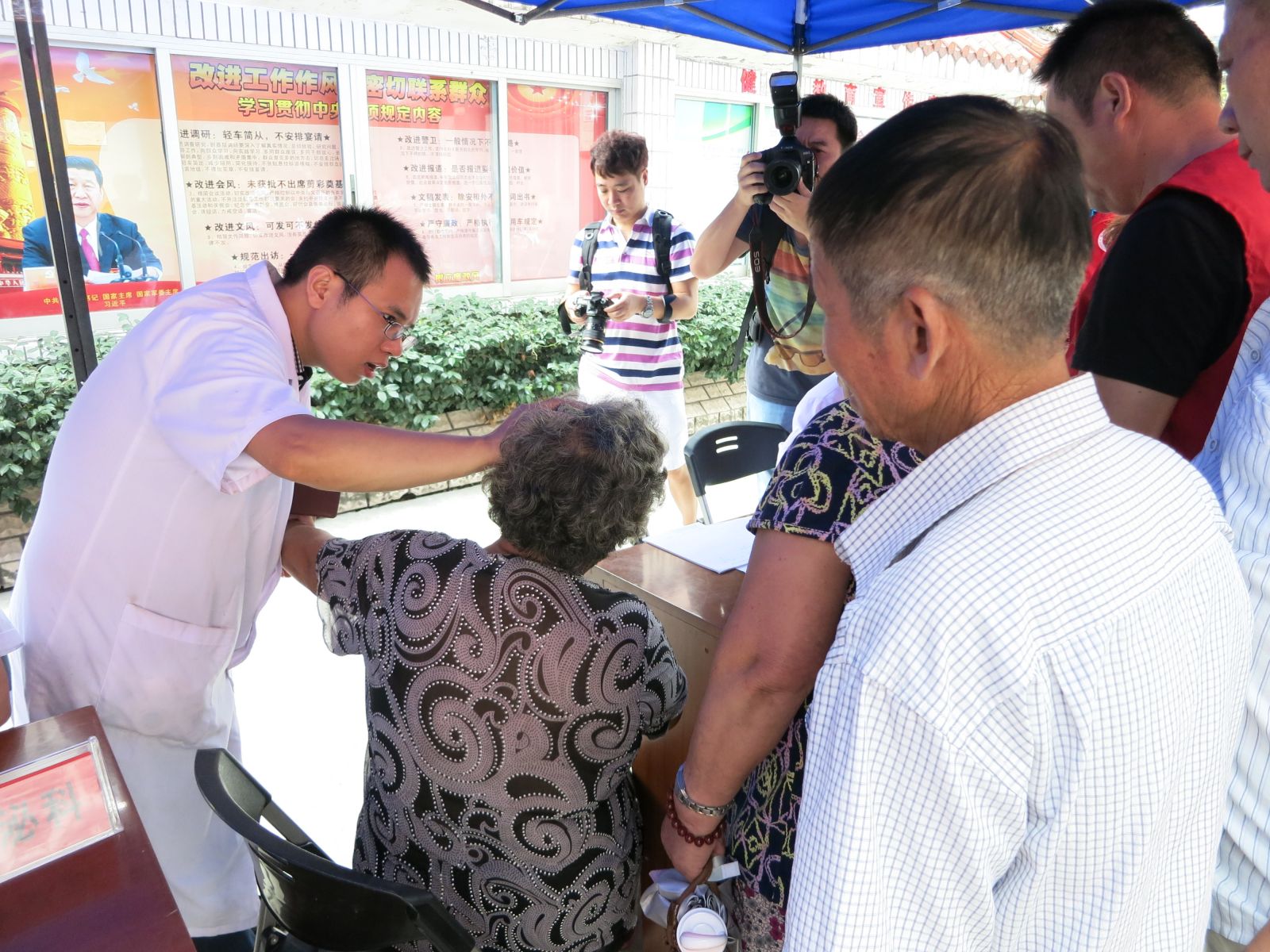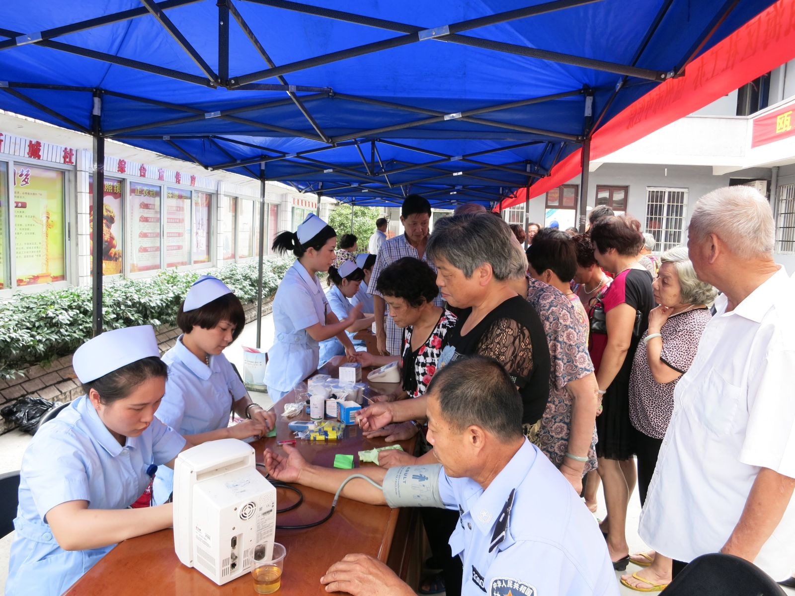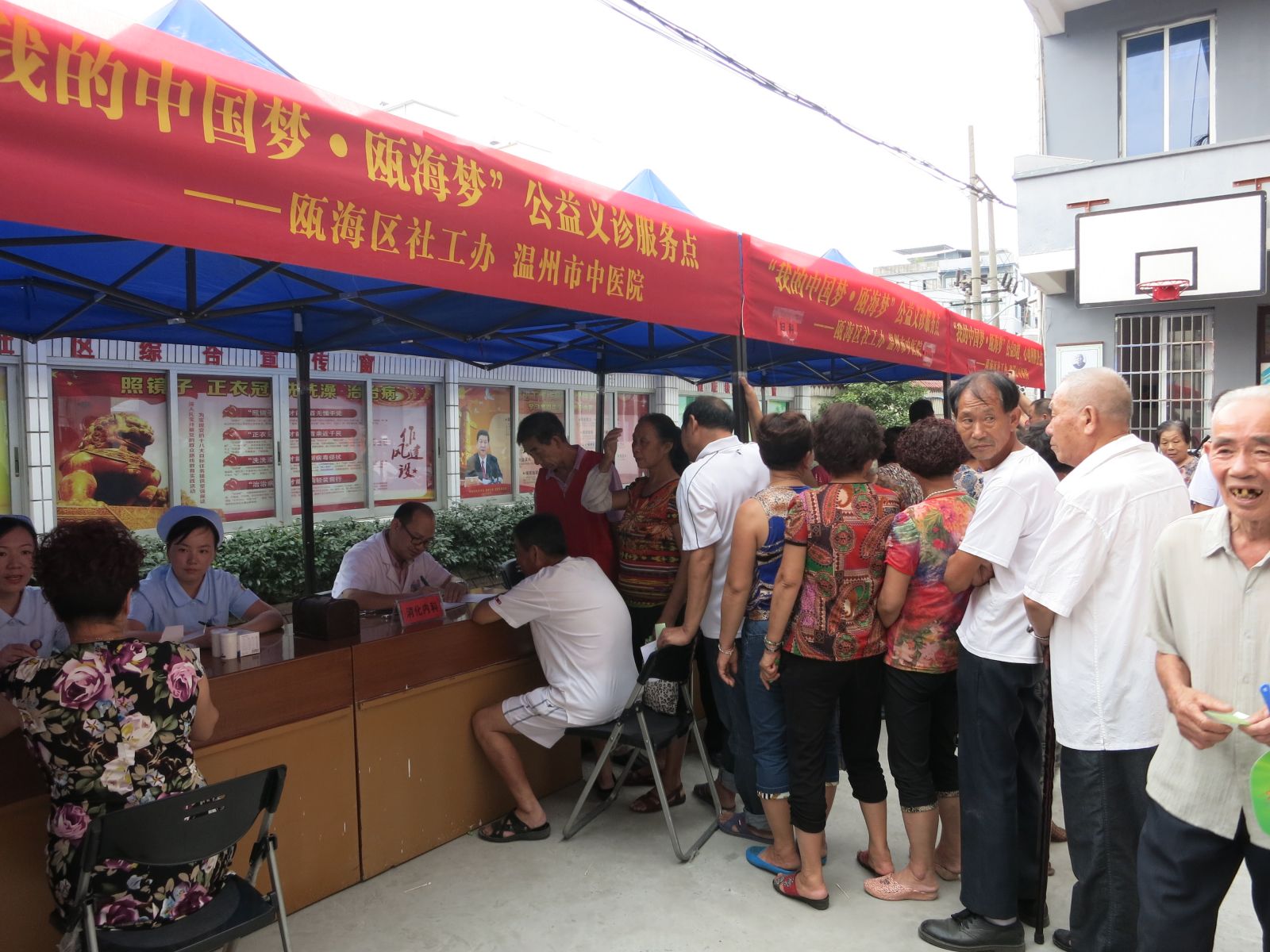 2013年9月18日,为响应市卫生局“三三行动”及“三好一满意”活动的号召,更好地为人民群众服务,结合绿帽社 90周年院庆活动。我院党委组织消化科、心内科、骨伤科、肿瘤科、针灸科、妇科等专家医生及医护人员共15人,前往瓯海区娄桥街道新城社区,参加瓯海区民政局组织的“我的中国梦·瓯海梦”进社区服务主题实践公益活动。活动现场为300余名当地居民提供健康咨询以及B超、心电图、测血糖、测血压检查等各项义诊活动,并免费发放价值8000余元的药品及健康宣传资料300余份。活动受到娄桥街道新城社区干部及当地群众的欢迎。温州电视台经济频道及《温州日报》予以报道。