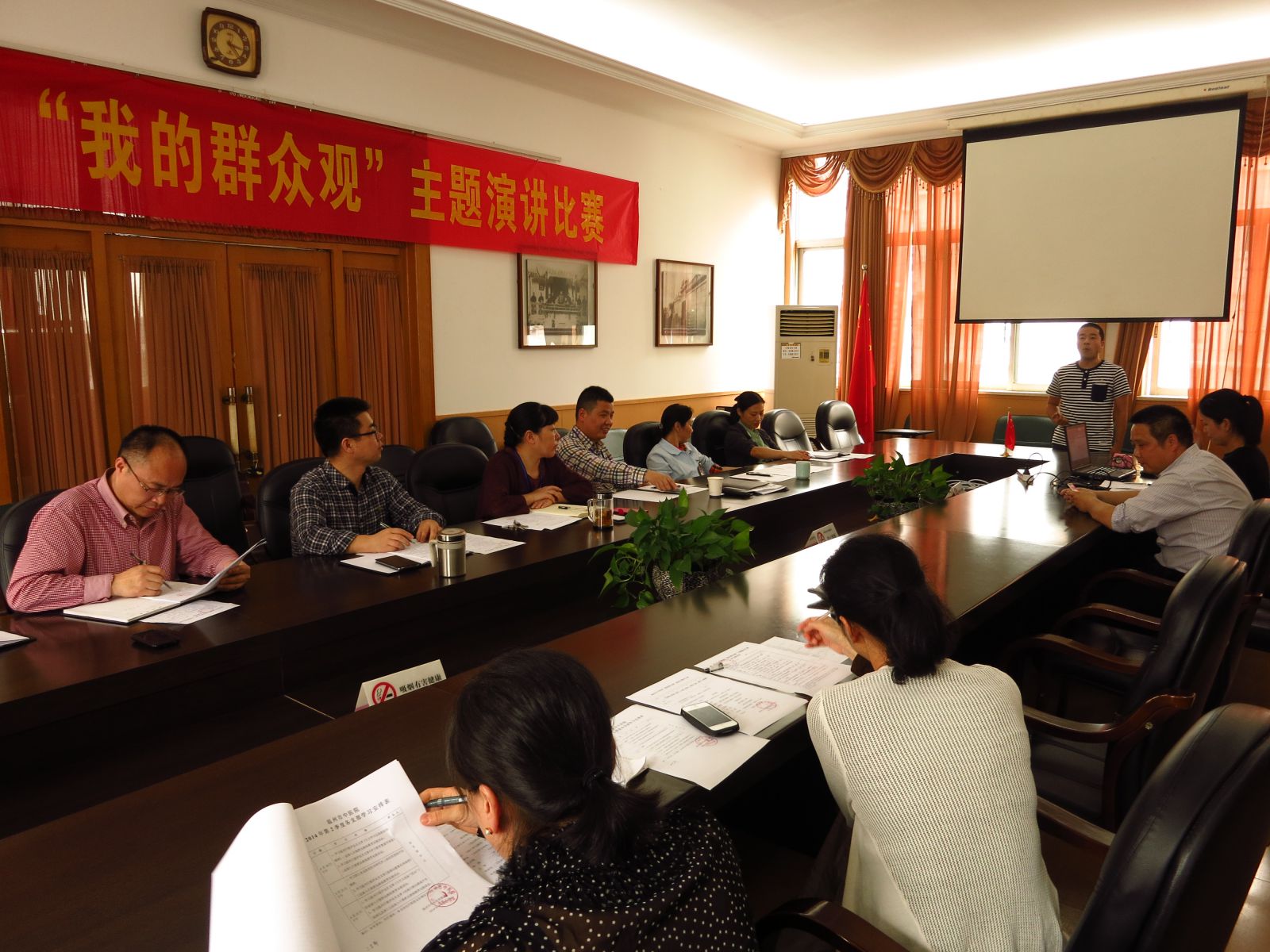 为贯彻落实党的群众路线教育实践活动。5月14日(周三)下午,我院党委组织举行绿帽社 “我的群众观”专题演讲比赛,来自绿帽社 的九个基层党支部各推选一名演讲者参加比赛。最后,综合支部杜希涛获得演讲比赛第一名,外科支部李琼瑶获得第二名,水心一支部陈翔获得第三名。
