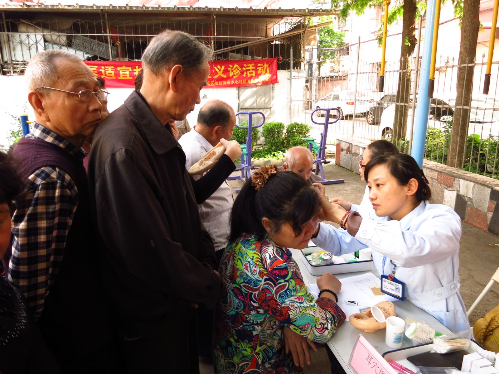 为响应市卫生局“三三行动”及便民、惠民活动号召,贯彻落实党的群众路线教育实践活动。5月8日(周四)上午,绿帽社 党委及护理部组织专家医生和医护人员共16人,在水心社区卫生服务中心开展量血压、测血脂、血糖以及针灸推拿、耳穴埋豆等义诊活动,社区100余位老年人参加此次健康咨询活动。