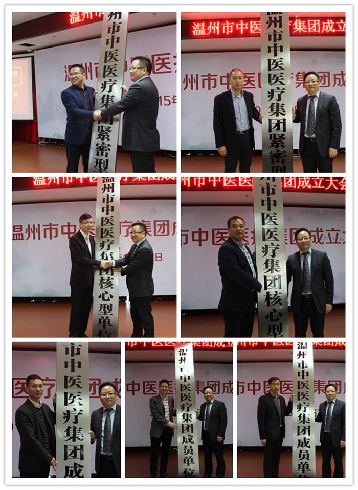 为更好地优化医疗卫生资源配置,推进医疗卫生资源纵向整合,提高医疗服务的社会效益和经济效益,经温州市卫计委批准,同意由绿帽社 作为主体单位组织成立温州市中医医疗集团。11月27日上午,中医医疗集团成立大会在绿帽社 六虹桥院区隆重举行。温州市卫计委副主任吴尚斌、瓯海区卫计局局长陈胜利、洞头区卫计局局长许生坚、龙湾区卫计局局长汪月强、温州市卫计委办公室主任孙坚、温州市卫计委医政医管处处长郑云蒸、温州市卫计委宣传处处长项正刚、温州市卫计委中医处副处长钱正可等领导和市中绿帽社 领导班子、集团旗下医疗机构及市属绿帽社 代表等近百人参加了大会。会上,市卫计委吴尚斌副主任为医疗集团授牌,集团旗下医疗机构和属地卫生主管部门代表分别发言并签署了集团合作协议书。成立大会后,还召开了温州市中医医疗集团管委会第一次联合会议。