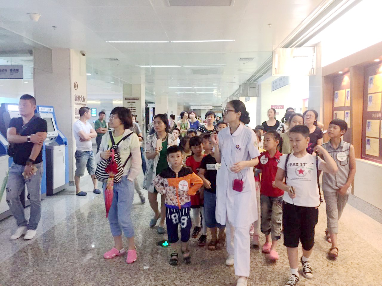 住院部八楼是妇产科,小朋友们在妇产科护士长单晓雪的带领下参观了病房,了解了婴儿刚出生时为什么要打预防针,整个过程小朋友始终遵守纪律,轻走轻言。