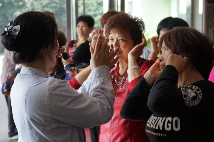 除此之外,我院还安排了专业的耳穴操和拍手操学习课程,由我院康复科护士指导大家学习。大家跟着揉耳按穴,拍手做操,学习气氛十分热烈。 小小的耳朵,按摩经络和穴位得当,也可以延年益寿。