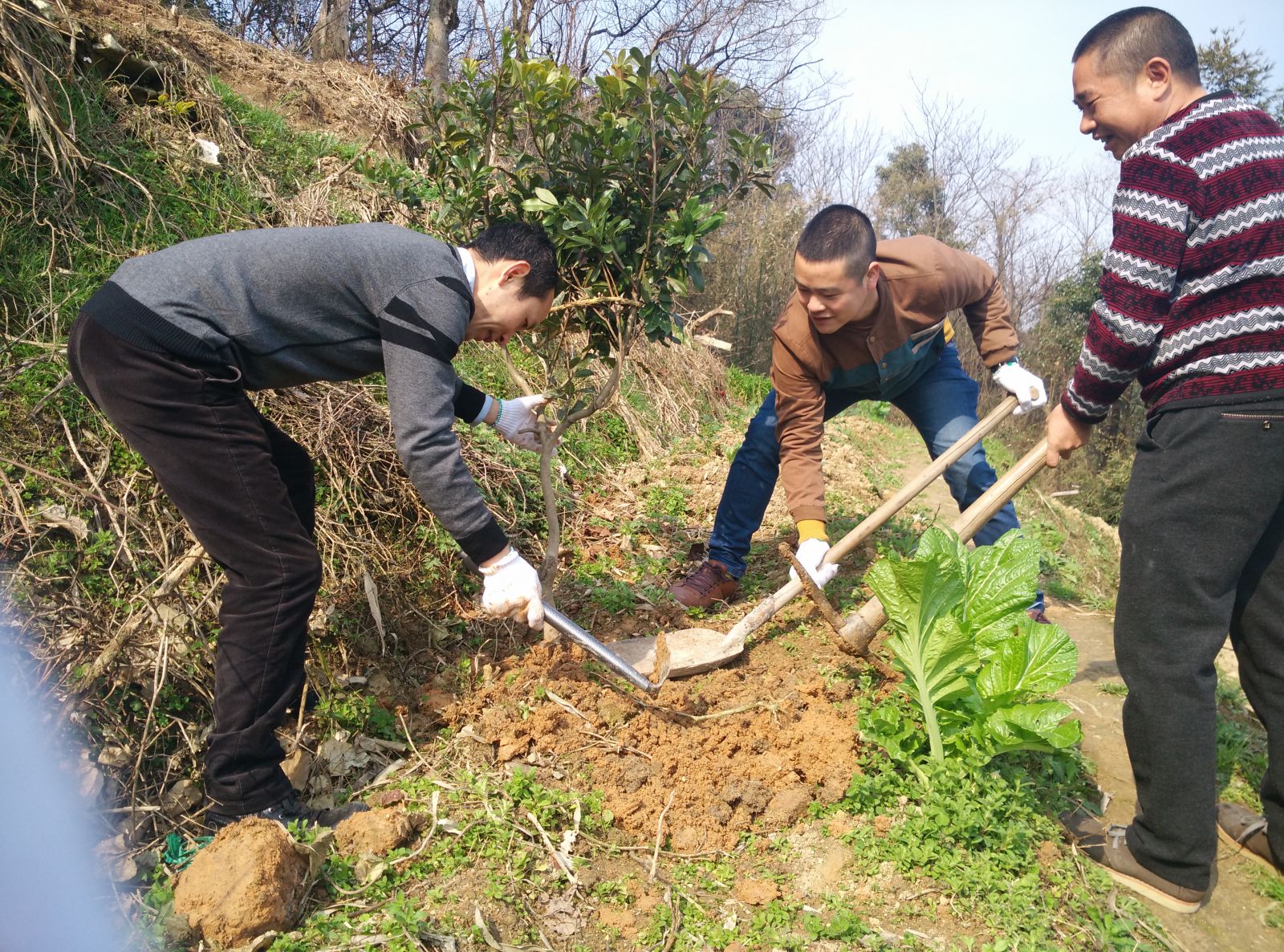 3月12日上午,我院在景山院区内闲置的山坡上开展了一年一度的义务植树活动。我院医护人员和行政后勤人员等10余名青年志愿者参加了本次活动。志愿者们以实际行动美化绿帽社 院容,巩固“绿色绿帽社 、环保绿帽社 ”成果。