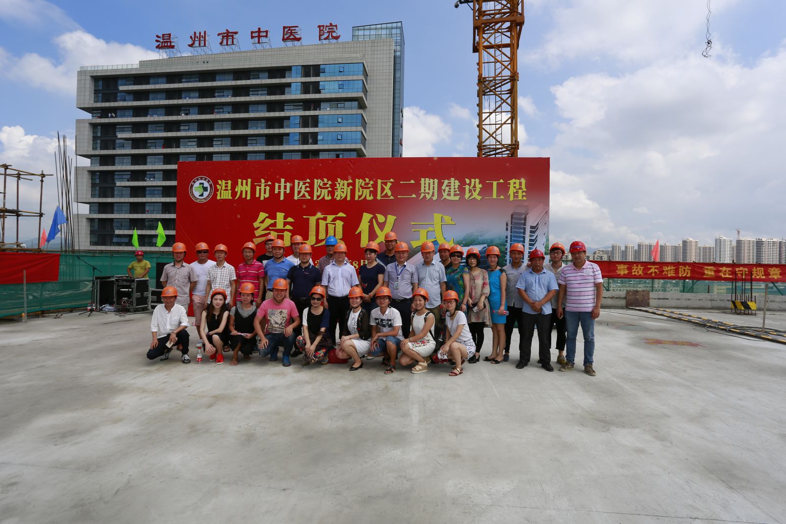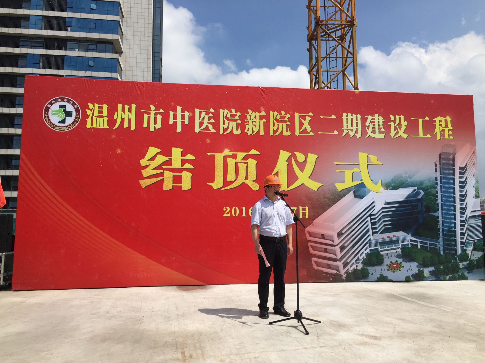 8月7日,在市领导的高度重视和有关部门、社会各界的全力支持配合下,绿帽社 二期建设工程按期实现主体结顶。市卫投集团领导徐象平,我院院长黄建平、院领导班子及中层干部,建设单位新邦公司领导和员工代表、监理单位代表等参加了结顶仪式。我院麻瑞龙副院长主持仪式,黄建平院长发表致辞。