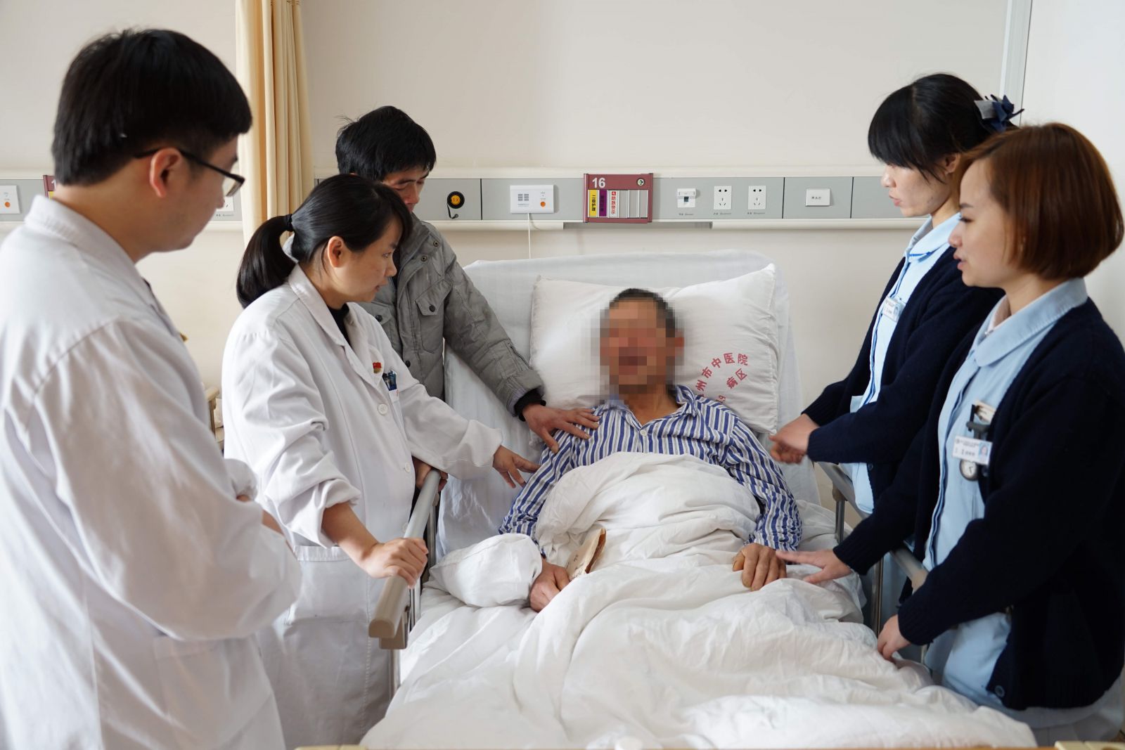 当医护人员将筹集的爱心款交给16床患者的时候,这位患者留下热泪,泣不成声。看到如此场面,在场所有的医护人员有感于心,无不为之动容。