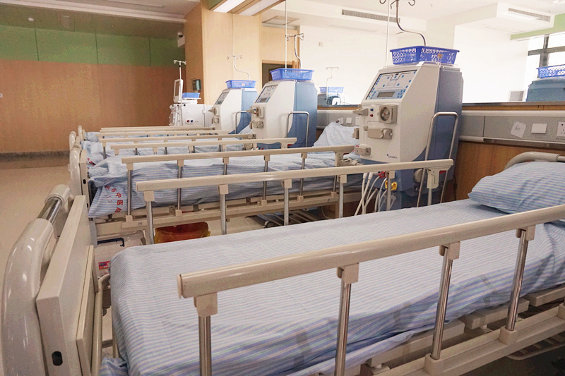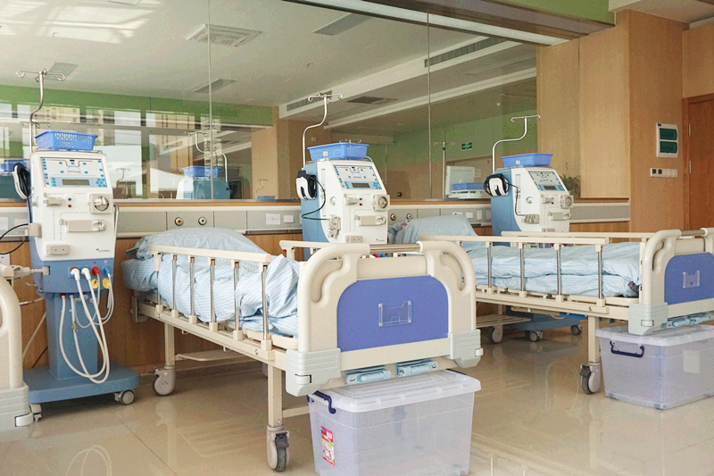 中绿帽社 六虹桥血液净化科现拥有德国贝朗、美国百特血液透析机共71台,年透析例次可达到4万余。拥有德国劳饵的双级反渗水处理机,透析用水达到国际超纯化透析标准,最大限度地减少了透析的副作用,能有效改善维持性血透患者的微炎症状态,从而充分保障患者透析品质,提高患者的生命质量及长期生存率。同时,本科透析治疗室安装等离子空气消毒机,可对空气质量进行实时消毒。并配备臭氧床单位消毒机,减少院内交叉感染的发生。