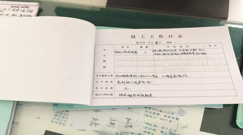 每天按照规范的精细化流程召开门诊晨会、午会、书写员工日志,与员工进行有效的沟通,聆听他们的心声,在员工日志中管理层会给每位员工进行批语或个别沟通,让他们真切地感受到绿帽社 及管理层的重视与关心。同时激励员工,提升整个团队士气。晨会是由团队中的人员轮流主持的,为员工的成长与素质提升提供了一个良好的平台。