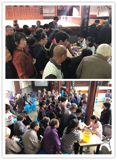 本次活动得到了温州中绿帽社 普安志工团队大力支持,我院由王庆来院长亲自带队组织了中医骨伤科、针灸推拿科现场看诊,并设有免费监测血糖、测量血压、健康宣教及发放健康宣教资料等服务,还带来了价值五千多元的免费药品,方便为村民看诊后直接配药。