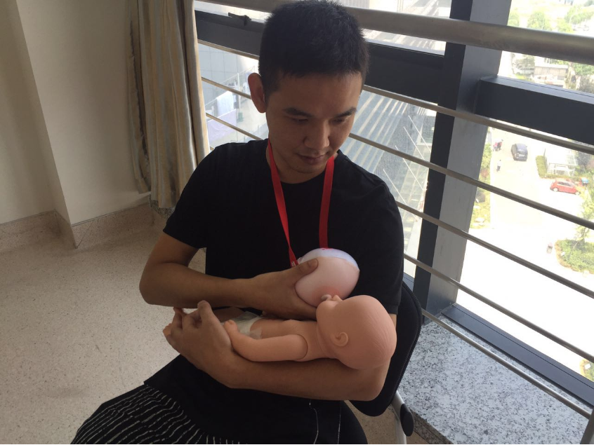 4、在医师指导下,准爸爸体验母乳喂养的辛苦;