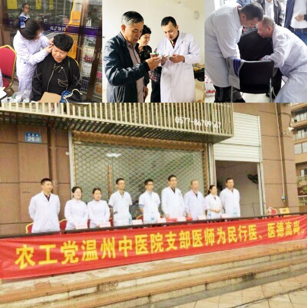 10月14日我院农工党总支部分党员,受瓯海区南白象街道西象村西象锦园业主委员会邀请,为西象村村民及业主义诊。