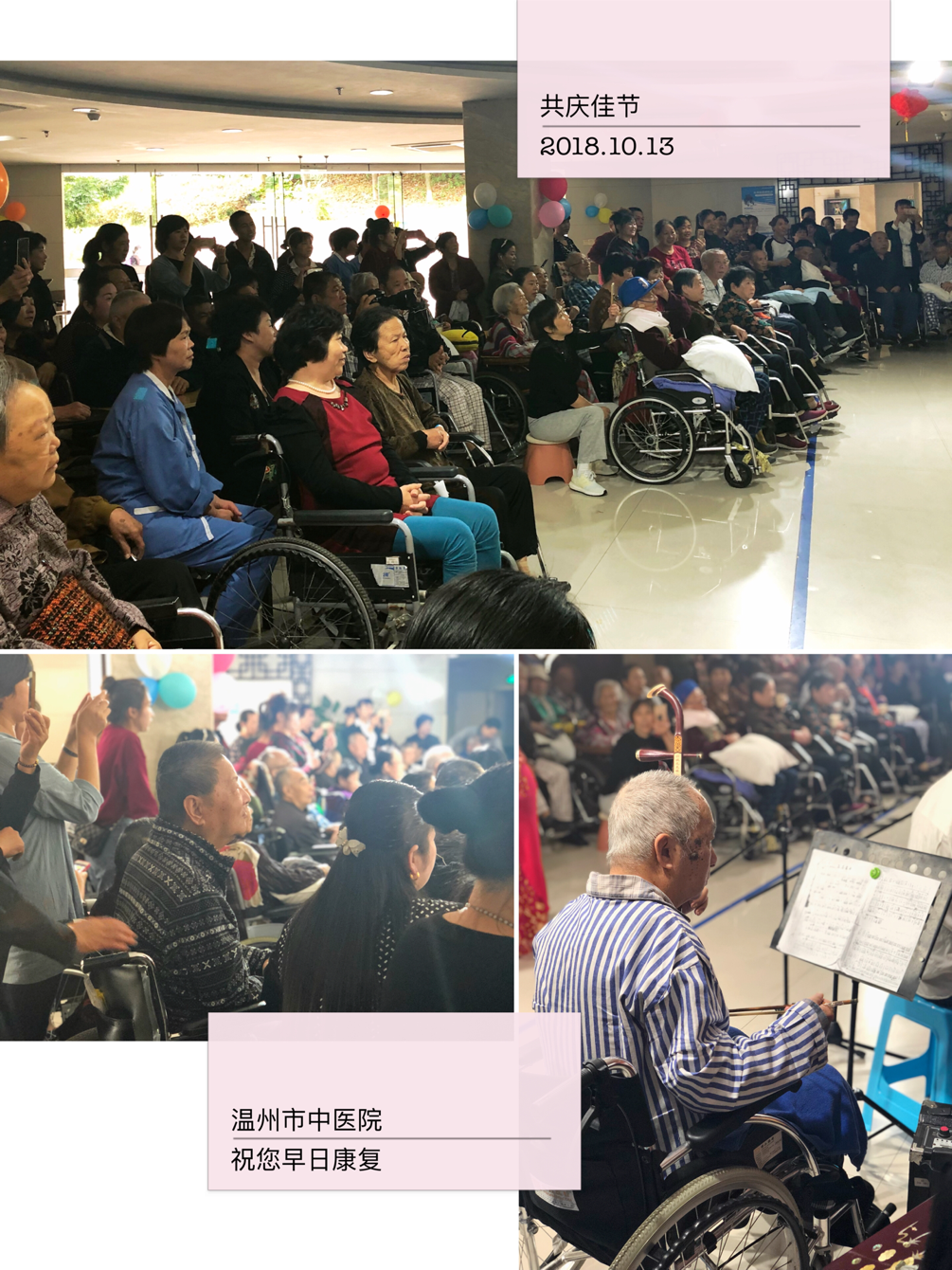 最后,伴随着“没有共产党就没有新中国”的歌声活动走向最高潮,瓯声艺术团与我们同约下次聚首。本次活动获得了患者人及家属的好评与肯定,营造了浓浓的节日氛围,也促进了病员间的交流。