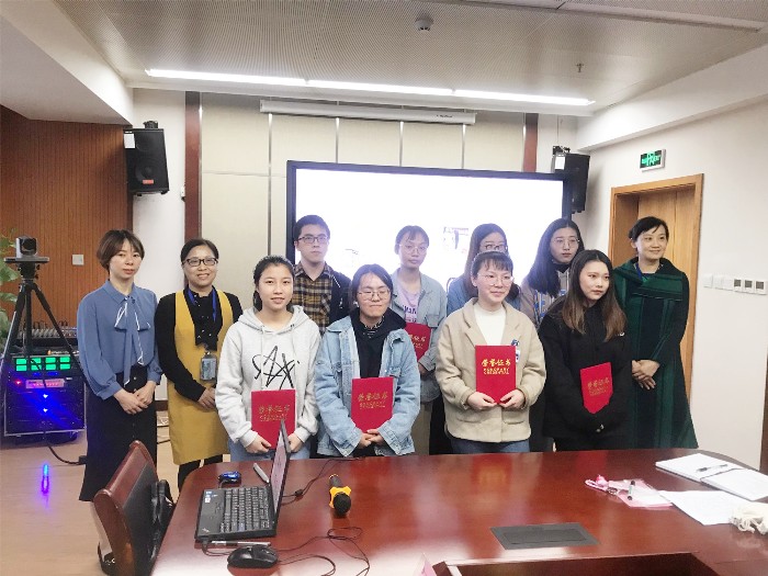竞赛结束后,护理部组织召开实习生颁奖大会,为本次实习生技能竞赛获奖选手颁发荣誉证书以及奖品。首先由护理教学组长伊仙琼致辞。以自身经历为例子,伊仙琼护士长在大会上有条不紊地讲述自己的心路历程,由此为实习生解答在日常临床实践中所碰到的常见问题,激励实习生不忘初心,方得始终。紧接着优秀实习生代表金珊珊同学阐述了实习中的感受及心境转变。接下来进行优秀实习生颁奖仪式,护理部根据实习生日常轮转表现,以及各带教老师的集中反馈,最终评选出年度护理优秀实习生陈吕静、潘幸星、金珊珊等8名实习生,并由护理部主任、护理部教学副主任及教学组长颁发荣誉证书,以资鼓励。