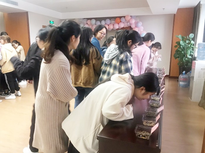 为了更好展现我院的中医教学特色,进一步提升实习生对中医药知识的认知,这次活动特意增加了实习生制作中药香囊活动。在认真咨询临床中医医生后,选出适合的苍术、辛夷、川穹、白芷等17种中医药材,合理配出提神醒脑方、预防感冒方、安神助眠方三种香囊配方,再由季双双老师在细心讲解中草药的相关知识后,实习生自行挑选适合的中药香囊配方,领取印有自己名字的香囊,制作属于自己的中药香囊,既能让实习生对中医具有更深层次的熟知,也能更好地传播中医药文化。
