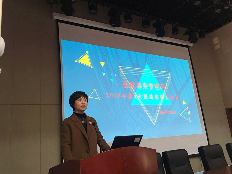 第二项议程为徐玉燕科长做2017年度院感工作总结和2018年院感工作计划。总结中突出了每季度的重点工作如安全隐患排查、新规范的培训、抗菌药物检查管理及标本送检情况、绿帽社 感染监测汇总及分析;2018年重点工作为三甲中绿帽社 等级复评工作、中医医疗技术感控SOP落实等。徐科长还针对此次大环境流感高发的现状,结合绿帽社 实际情况进行了分析,强调了宣传培训、人员管理、环境消毒、手卫生、个人防护等防控措施。