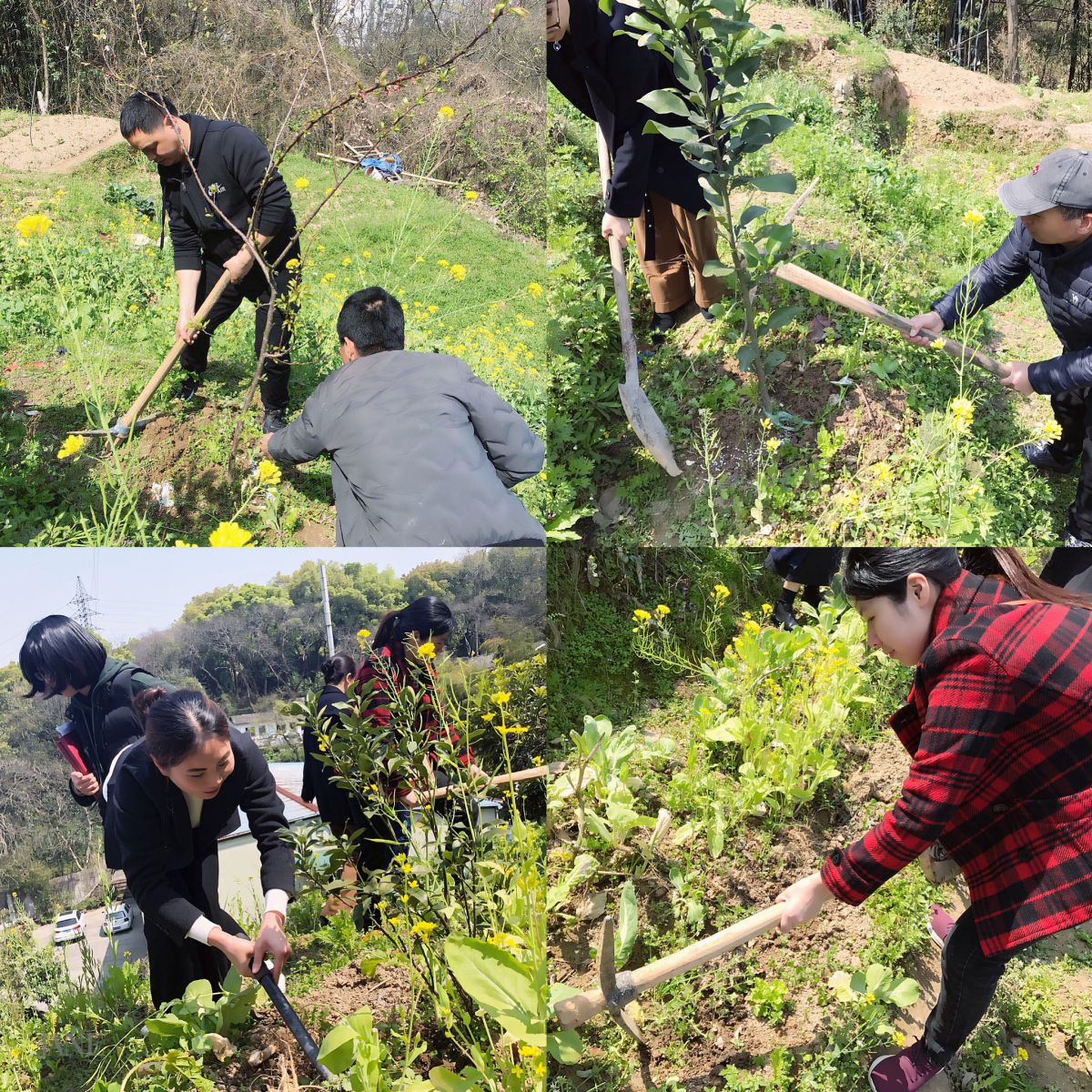 在支部书记章国伟同志和陈炳、孙云两位院长助理的带领下,水心景山党支部20多名党员来到了我院景山院区后山上。去年植树节种下的40多株果树苗已经开了花。一排排整齐的花果树,在风中摇摆着树枝,尽显春天的生机勃勃。在阳光下,大家纷纷脱下外衣,撸起袖子,拿起铁锹,刨坑挖土,除草移植,施肥浇水,配合十分默契。