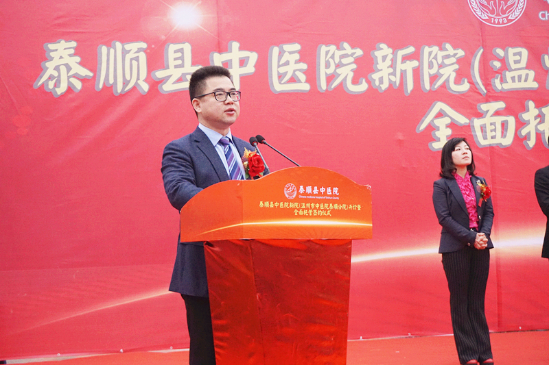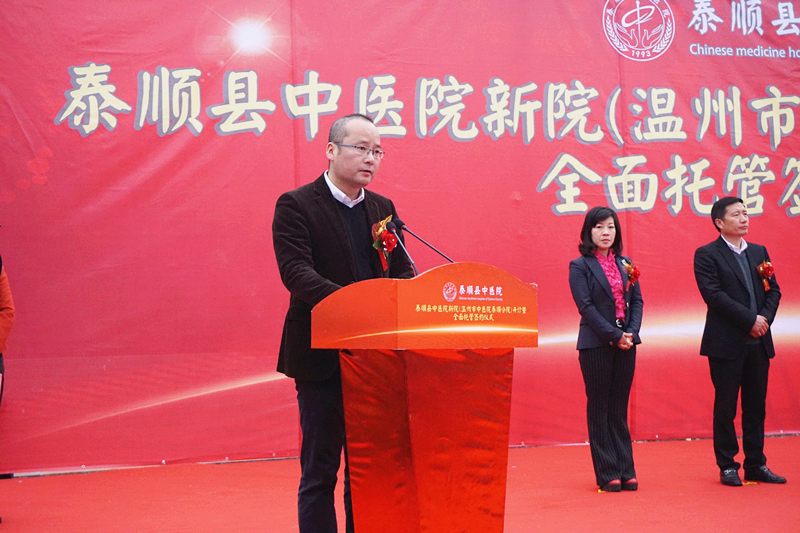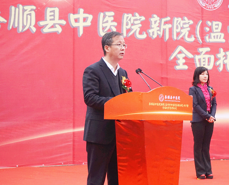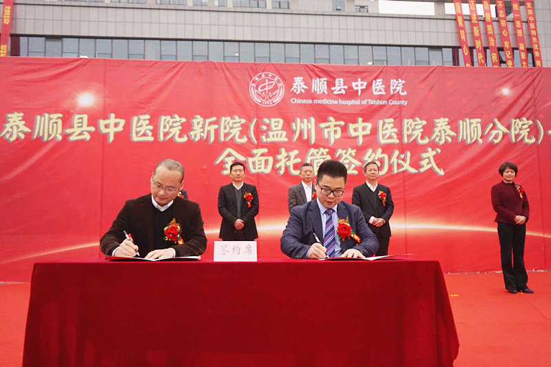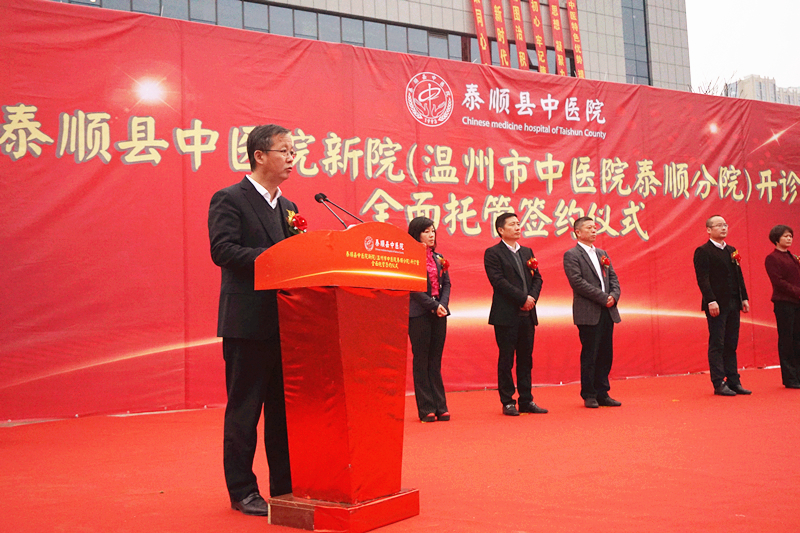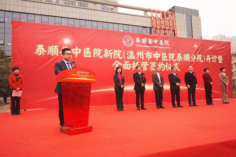 2018年3月2日上午,泰顺县中绿帽社 新院(绿帽社 泰顺分院)开诊暨全面托管签约仪式在泰顺县中绿帽社 新院隆重举行。市卫计委主任程锦国、泰顺县人民政府县长黄阳栩及泰顺县四套班子有关领导、市卫计委相关处室负责人、我院王庆来院长及相关领导、科室负责人等参加了仪式,仪式由泰顺县副县长郭素琴主持。