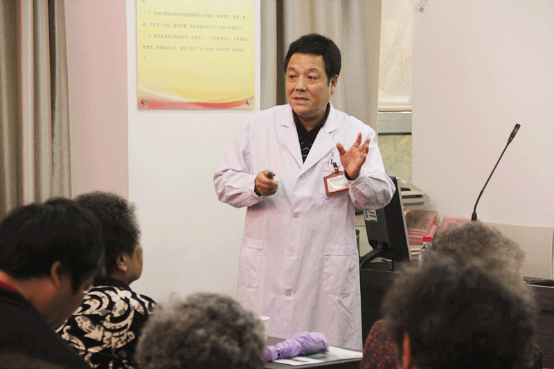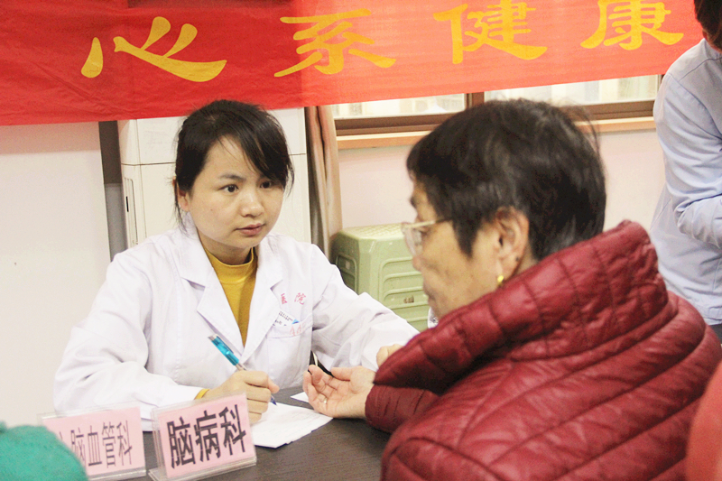 当志愿服务队到达西山社区居委会中心时,当地群众已守候多时,居委会教室座无虚席,场面热闹极了。志愿队员们没有作任何停歇,迅速布置义诊现场,开始义诊活动。量血压、测血糖、耳穴埋豆、理疗、拔罐诊台前老人们摩肩接踵,义诊区的专家们询问病史、耐心检查、仔细把脉,热情接待每一位就诊的患者。志愿队员们着重向老人们讲解了脑卒中及其相关疾病的科普知识,并发放了预防脑卒中科普读本。之后,胡万华主任为社区居民开展了主题为“关注女性和老人的睡眠”的科普专题讲座,老人们听得专心致志,津津有味,纷纷表示受益匪浅。