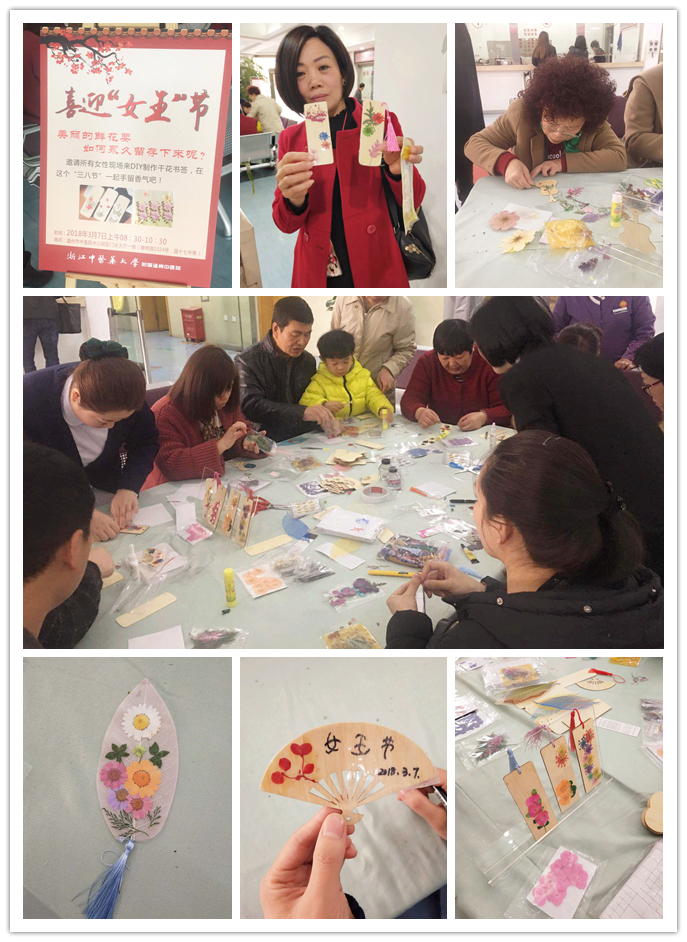 门诊部的护士们还准备了现场制作干花书签的活动。制作完成的书签小巧玲珑,妙趣横生,散发着缕缕幽香,美观实用又环保。现场的女性朋友们纷纷表示在活动过程中感受到了节日的喜悦与温馨!