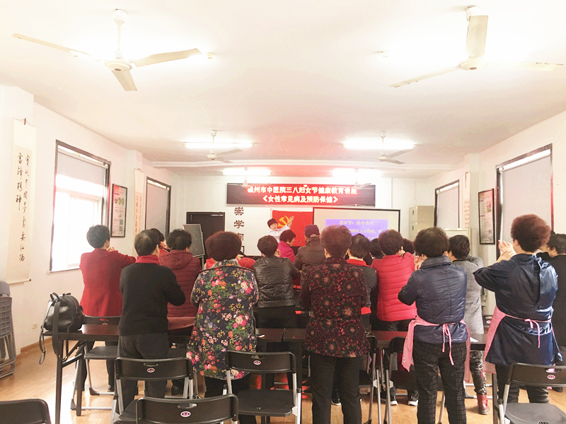 在三八妇女节临近之际,我院举办了多场妇女节健康教育讲座。3月5日,在水心桂柑社区居家养老服务中心,我院中医妇科胡欣欣医师为到场的女性朋友们主讲了《更年期女性综合保健》,讲座后,我院护士章州诗带领女性朋友们学习了经络操,现场气氛活跃。3月6日,中医妇科颜晓钏医师在水心社区居委会为女性朋友们讲授了《女性常见病及预防保健》,护士夏施施同样带领现场的女性朋友们学习了经络操。医师专业的讲说,讲座实用的内容,以及经络操良好的效果,贴合女性朋友们的需求,受到了热情的欢迎和好评。