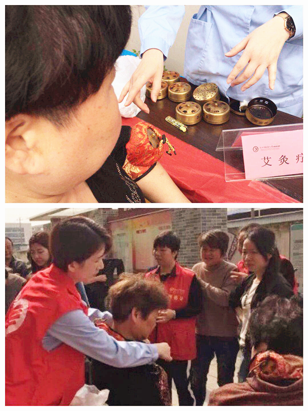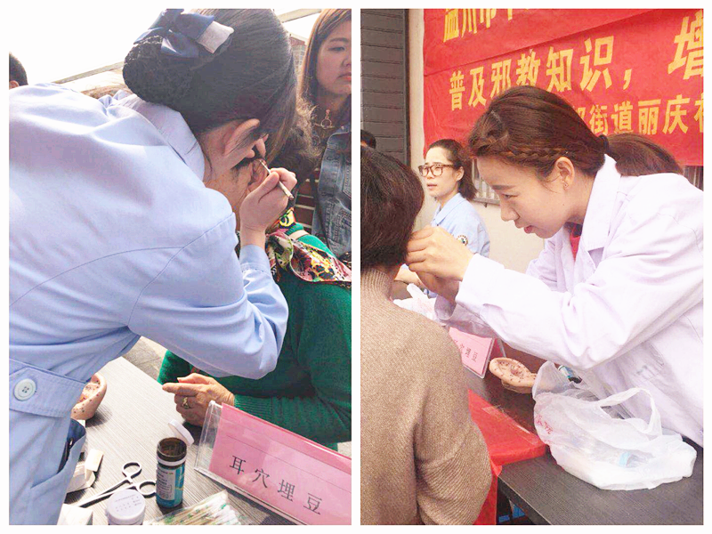 艾灸疗法:艾灸疗法是指通过点燃用艾叶制成的艾条,熏烤人体的穴位以达到保健治病的一种自然疗法,有助于安神助眠、保养脾胃、增强免疫力等。志愿者通过讲解艾灸的功效、操作流程、适应症以及注意事项,帮助居民了解了这项中医操作。