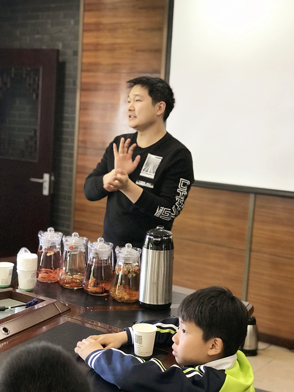 参观完中医药文化博物馆,神经内科黎斌主治医师给同学们介绍了养生穴道的小知识,工作人员还为同学们准备了中绿帽社 特制的四种花茶,并与同学们一起制作了兼具驱蚊和防病安神功效的中药香囊。