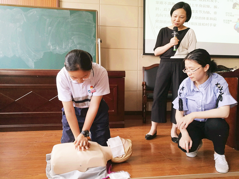 目前我国只有不足1%的人掌握心肺复苏术,院外心脏骤停患者抢救成功率亦不足1%,多少患者因无法在黄金时间内得到急救而留下严重的后遗症甚至因此失去生命。授之以鱼不如授之以渔,培训中学生掌握有效的急救手法对于中学生黄金四分钟内的自救、互救有着重要意义。