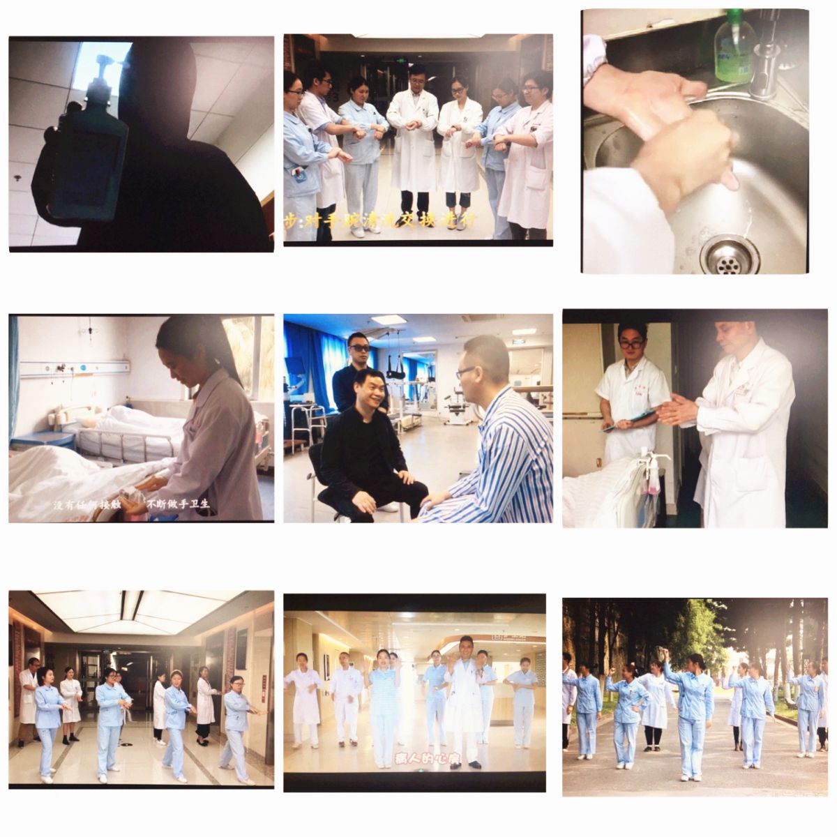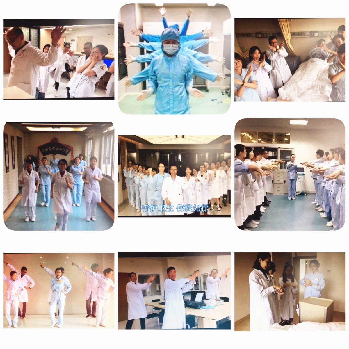 中医妇科的孙云主任带领大家热舞,起劲的舞姿很有感染力。手术室的《律动的旋律》中的医护人员统一穿着蓝色的手术衣,高大上的地球背景,剪辑完美。呼吸科选送的《快乐洗手》由科室独创改编歌词,“白衣天使降临在病人身旁,带去健康和希望,让我们勤洗手,是抵御病菌的秘方,要向全世界宣告,健康绽放......”呼应活动主题。消化科视频中诙谐的开端,张宣义主任夸张的反面表演,让人忍俊不禁。骨科2不善于舞蹈的吕存贤主任也积极带领科室人员完成了精彩的表演。神经内科1 胡万华主任的开场白让人感受到科室人员的感控决心。“从前有家绿帽社 ,绿帽社 里有个科室,科室里有个医生......”急诊ICU与重症监护室视频作品中的“黑细菌”形象“瘆”入人心。检验科三大主任的尴舞“惊艳全场”。章国伟主任的大佬“金盆洗手”令人印象深刻。