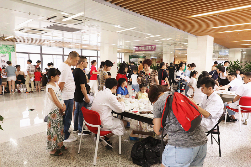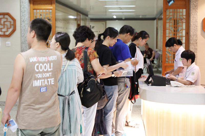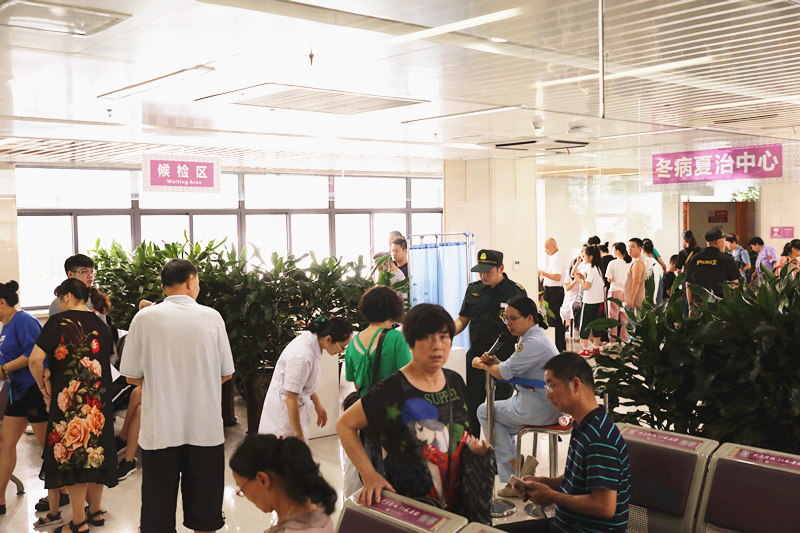 上午8时,我院冬病夏治“头伏贴”正式开始,门诊五楼人头攒动,就诊台前排起了“长龙”,挤满了前来贴三伏贴的市民。