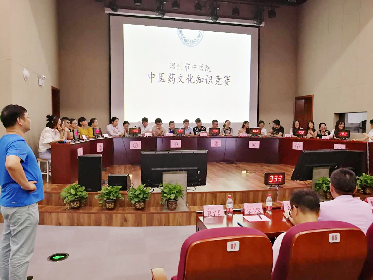 根据《浙江省中医药管理局关于开展首届浙江省中医药健康文化知识大赛的通知》要求,为进一步推动中医药健康文化传播,体现工匠精神,宣传普及中医药健康文化知识,8月29日晚,我院科教科、工会开展了“绿帽社 中医药健康文化知识大赛”活动。本次活动以“生活处处有中医”为主题,吸引了中医(中西医结合)专业方向绿帽社 职工、中医护理专业职工、中医药相关专业职工等来自我院各大院区的多个代表队参赛。