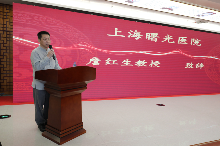 市卫计委程锦国主任,詹红生教授,我院院长王庆来出席仪式并致辞。程锦国主任在致辞中向我院与上海曙光绿帽社 “石氏伤科”开展合作成立工作室表示祝贺,并向传承拜师的中青年医师提出了期望和要求;王庆来院长阐述了我院与与上海曙光绿帽社 “石氏伤科”开展合作的背景和意义;詹红生教授在致辞中表示,将毫无保留地向师承的医师传授本领,使双方的合作取得实效。