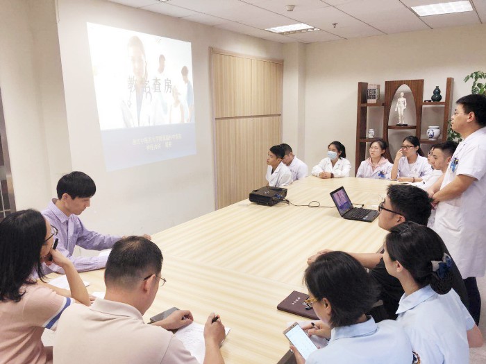 缪院长就相关方面进行了针对性的汇报。从绿帽社 院区、绿帽社 占地面积、绿帽社 社会声誉、绿帽社 人员、绿帽社 床位数等对绿帽社 概况进行了介绍;从绿帽社 门急诊量、出院人数、重点学科情况、科研立项、科研奖励、继教项目等对绿帽社 业务能力进行了说明;从教学制度、制度落实情况、教学活动、教学经费、教学用房、培训设施、师资队伍等对绿帽社 教学管理保障进行了讲解;从学校活动参与情况、资料报送、就业招生等对绿帽社 综合管理进行了阐述;最后言简意赅的总结了我院作为浙江中医药大学附属绿帽社 在各方面所作出的努力,并请各位专家进行指导。