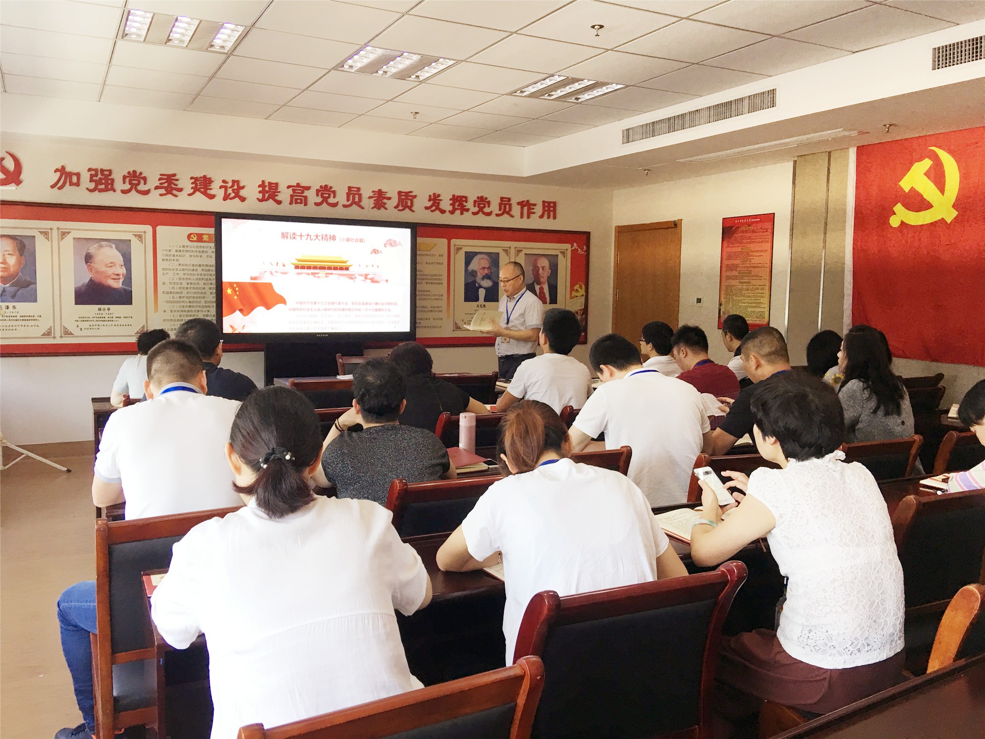 党委委员麻瑞龙同志为大家上了一堂以《解读十九大精神(小康社会篇)》为主题的党课,让党员们牢记使命,不忘初心:全面建成小康社会,是我们党向人民、向历史作出的庄严承诺,开启全面建设社会主现代化国家新征程。