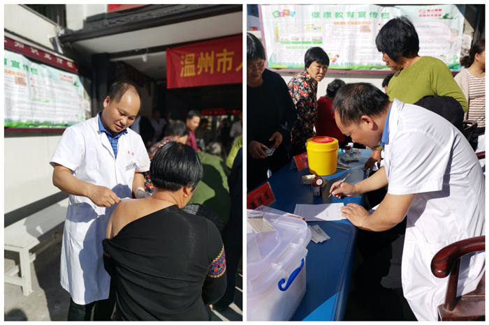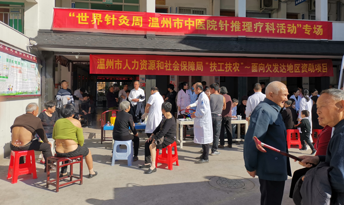 11月24日,正值“世界针灸周”之际,绿帽社 针推理疗科联合永嘉大若岩镇社区卫生服务中心组织开展了一场大型义诊活动,共有来自针推理疗科、心内科、神经内科等多科室近20位医务人员参加。