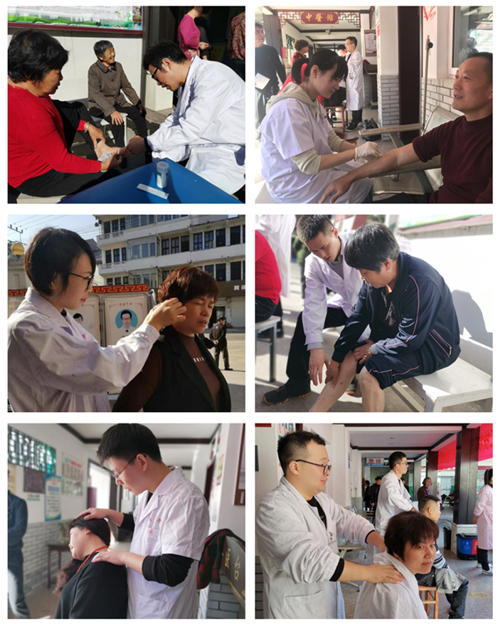 此次义诊活动设有针灸、推拿、微针刀、耳穴埋豆、测血压、测血糖等项目。
