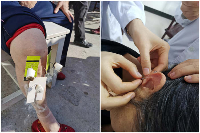 刘海飞、方君辉、潘胜莲副主任医师,叶必宏主治中医师、金鲁微医师等主要进行现场诊断治疗,给予针灸、微针刀、耳针、耳穴埋豆等综合方法以疏通经络。病人们经过治疗后,疼痛不适、活动受限等症状较前减轻。