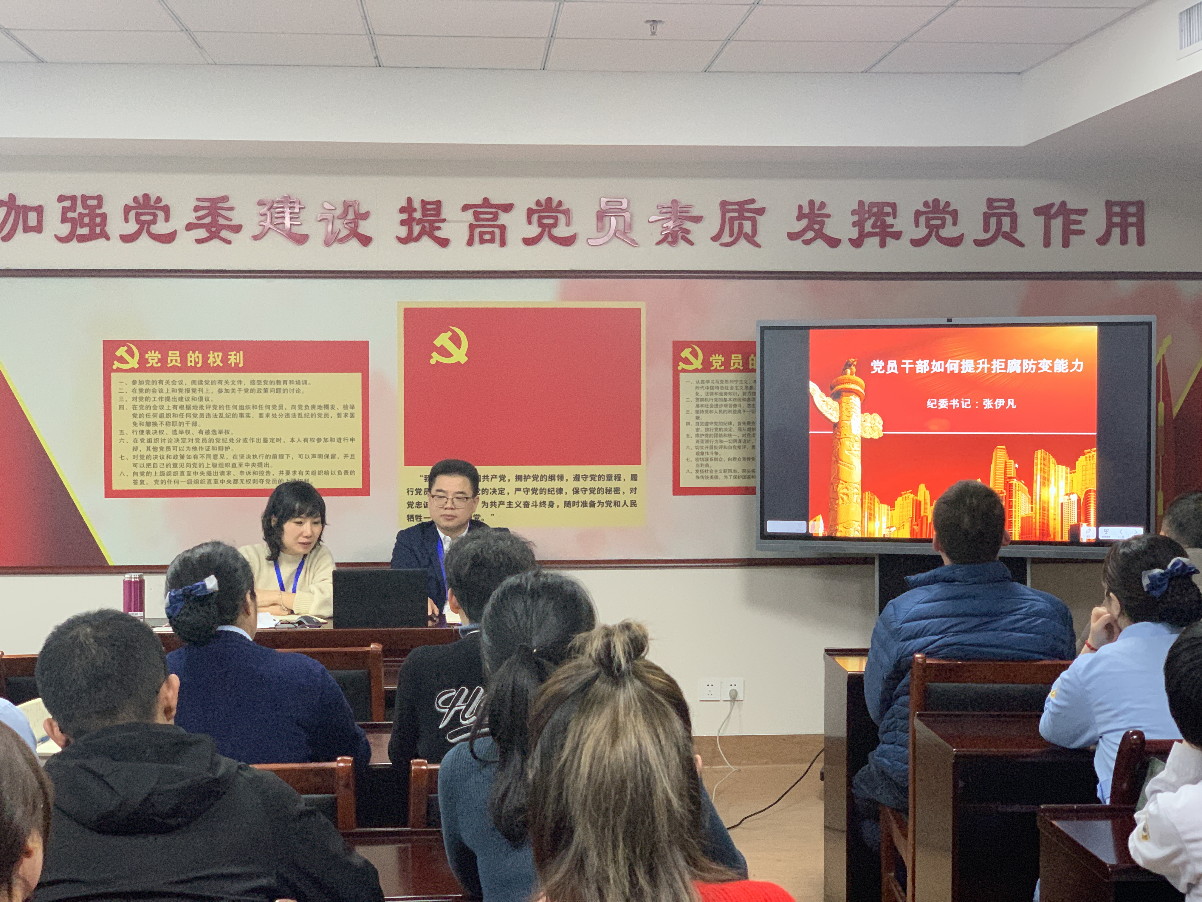 随后,纪委书记张伊凡向与会所有网格监察员上了关于“党员干部如何提升拒腐防变能力”的专题培训。她从理论联系到实际,带领大家深入学习了《中国共产党纪律处分条例》的新变化,同时重点介绍了在党的十九届四中全会中,纪检监察方面需要重点掌握领会的内容。通过一系列典型案例剖析,反映了当前全面从严治党、严格执纪问责的高压态势。
